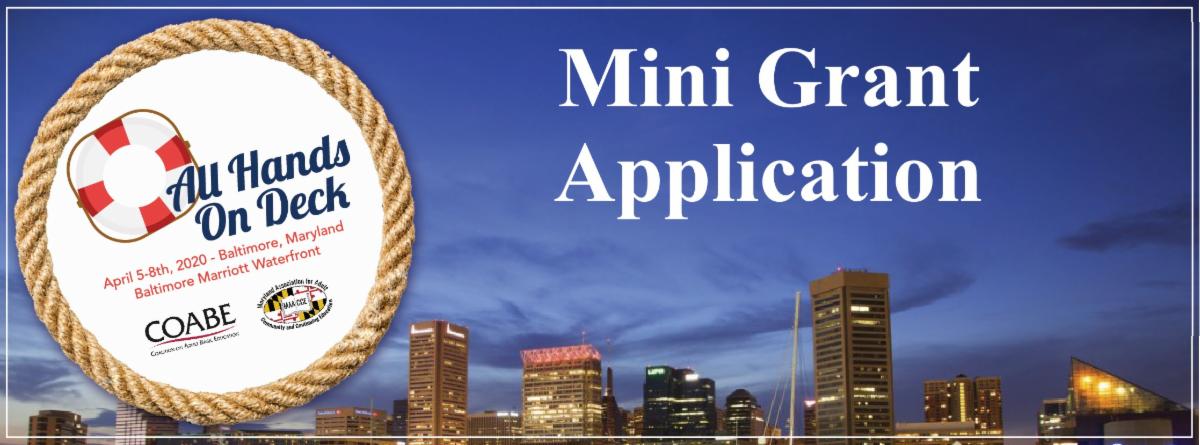Join us in the beautiful Inner Harbor of Baltimore, Maryland for our upcoming 2020 COABE National Conference. Click here to submit your mini grant application.