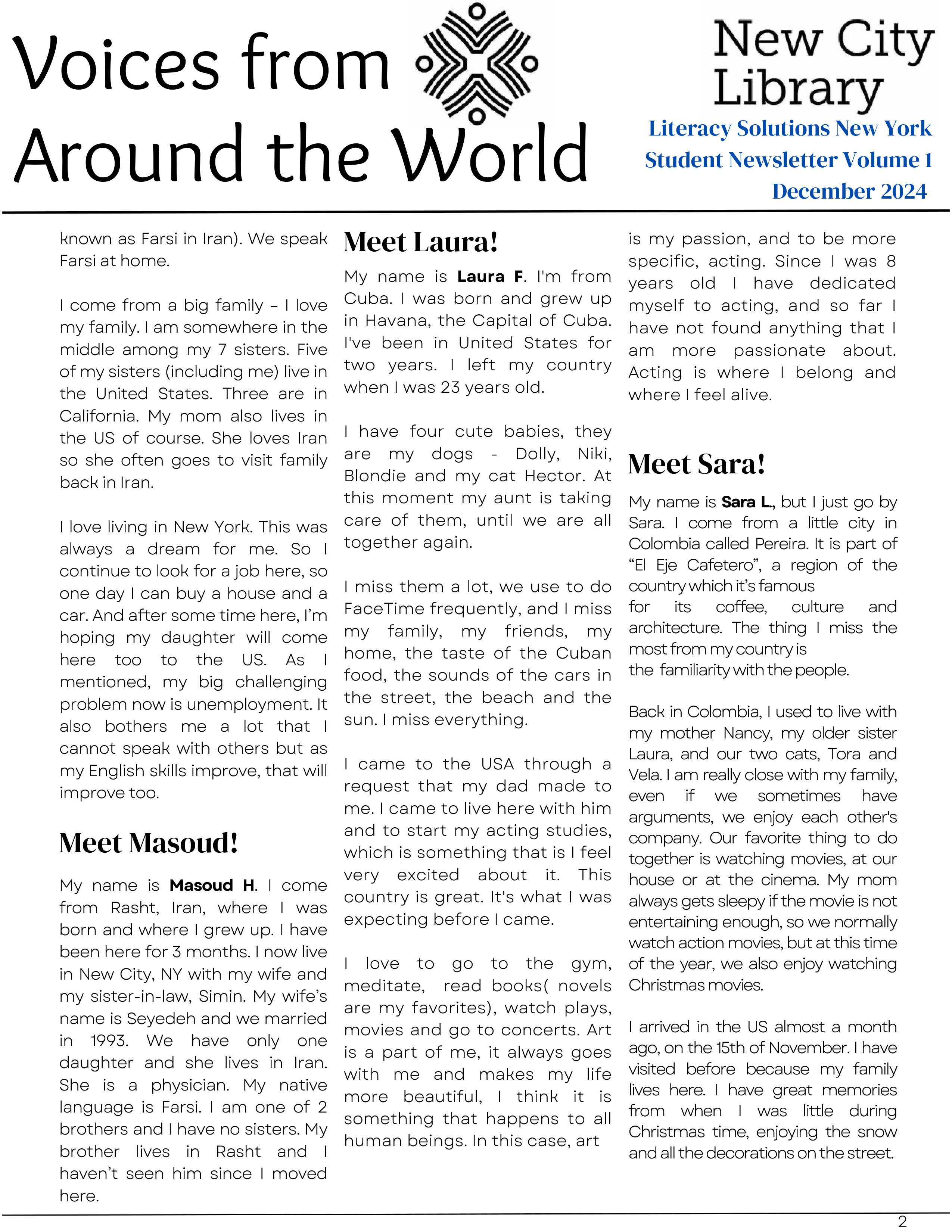 The finished newsletter, Voices from Around the World, stands as a record of that process. More than a class project, it reflects how literacy grows when learners are given ownership, audience, and purpose. For Suzi’s students, writing was no longer just practice—it was participation.